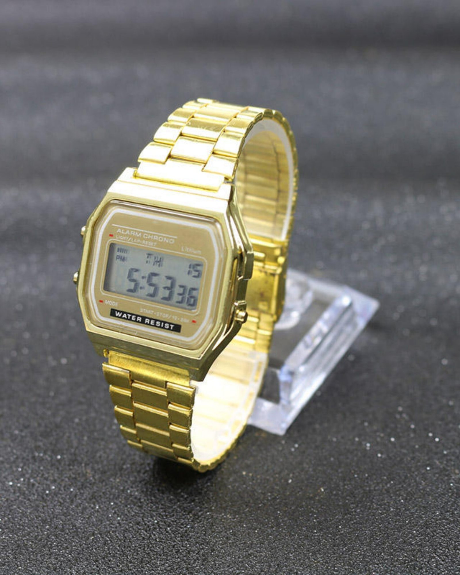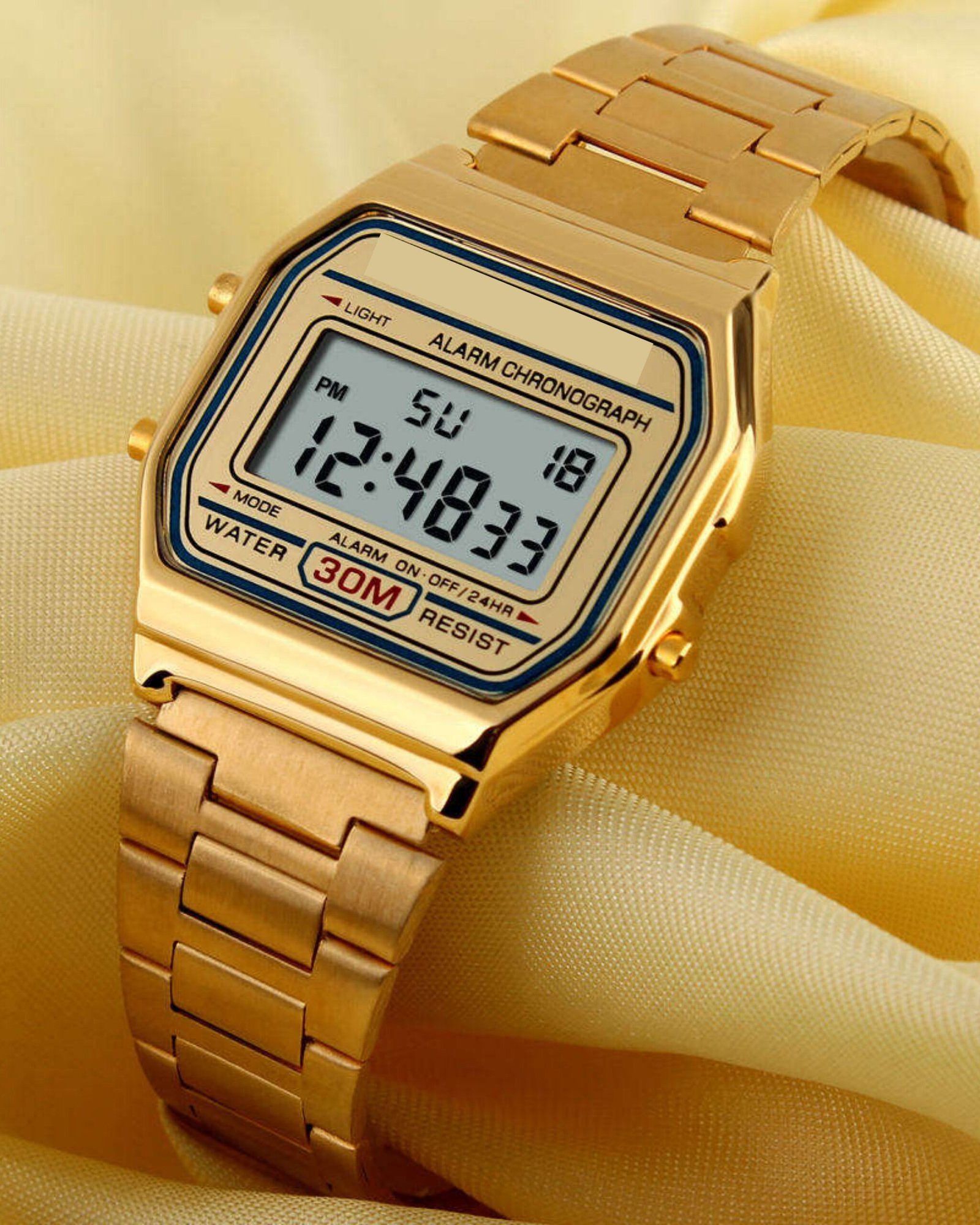 Classic Digital Gold Wristwatch – 30M Water Resistant, Alarm & Chronograph